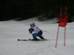 始めからクラウチングでせめて滑りました。2本目にゴールした後、転んで腰を