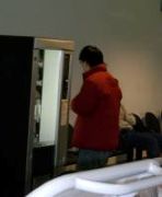 ジャンプ場 革のベスト試着中