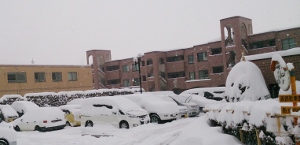 | 今日は、いつもよりは寒かったです。朝から雪が降っていて時おり 風が強くなりました。 大変です。 |
