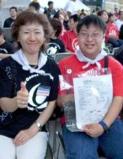| 9月11日 (土) 2005年スペシャルオリンピックス冬季世界大会500万人トーチランの分火式が、 六本木ヒルズアリーナでありました。 全国からたくさんの人が集まりました。 10月24日(日)札幌であるトーチランの火をもらいました。 来年の2月の末から、SO冬季世界大会が長野であります。 僕もアルペンスキーに出ます。 |