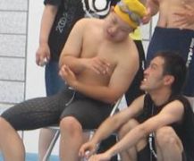 来週は紋別でSOの大会があります。自信もって泳げよ とコーチが