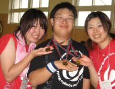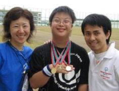 ボランティアさんと 田中コーチ東京の工藤コーチ 世界大会トリオ