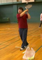 | 8月29日(土) テニスのプログラムの日です。発表会をしました。朝起きて 持っていく荷物の確認をして北区体育館に行きました。 準備体操をしてテニスをしました。まず、基本練習をしました。 手でボールをついたり、ラケットでボールをついたり、ラケットの上で 何回ボールをつけるかなどしました。それから、フォアー打ちや バック打ちなどいろいろな打ち方の練習をしました。 後半は、30秒の間にいろいろな方法で何回ボールをつけるか 数えました。その後フォアー打ちとバック打ちでボールを相手コートに 返しました。僕の返したボールの落ちた位置で点数がつきました。 何球かの合計が僕の点数でした。 今日でテニスのプログラムが終わりです。面白かったです。 ![]() テニスをしてる僕 |