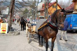 馬車に乗ってスキー場に行きました。