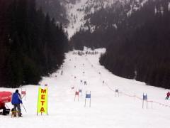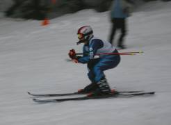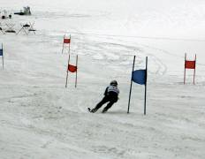始めからクラウチングでせめて滑りました。2本目にゴールした後、転んで腰を