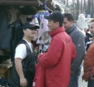 日本選手に会いました。みんなで応援をしました。風が強くて開始時間が